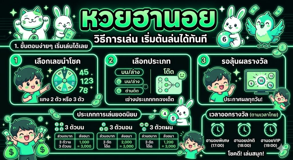 วิธีการเล่นหวยไทย บทความนี้จะอธิบายวิธีการเล่นหวยฮานอยอย่างละเอียด ตั้งแต่พื้นฐาน ประเภทของหวยฮานอย วิธีแทงเลข ไปจนถึงเทคนิคการเลือกตัวเลข เพื่อให้ผู้ที่สนใจสามารถเริ่มต้นเล่นได้อย่างเข้าใจ